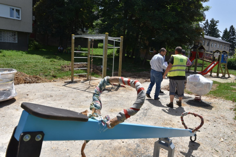 -Na novom dječijem igralištu u ulici Marcela Šnajdera jučer smo na pripremljenu podlogu postavili šest sprava dječijeg mobilijara: kombinovanu spravu sa dva tobogana i dvije ljuljačke, klackalicu, njihalicu i vrtešku. Tokom naredne sedmice planiramo postaviti gumenu zaštitnu podlogu i uraditi sanaciju travnjaka oko novog igrališta. Također na zelenoj površini pored ciciban igrališta planiramo postaviti dva mala gola za nogomet. Na ovoj lokaciji nismo trebali postavljati ogradu oko igrališta jer se radi o izdvojenom prostoru bezbjednom za igru mališana. Naredni korak je uređenje prilaza igralištu iz Ulice Marcela Šnajdera. Što se tiče dječijeg igrališta na drugoj lokaciji u ulici Dajanli Ibrahim-bega danas ćemo započeti postavljanje gumene zaštitne podloge. S obzirom na prostorne mogućnosti, na ovoj lokaciji smo postavili dvije njihalice i jedan tobogan. Završetak radova na izgradnji ova dva dječija igrališta očekujemo tokom naredne sedmice, objasnio je Velibor Marković koji rukovodi izgradnjom u ime KJKP „Park“.
